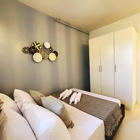 Welcoming guests to a balcony and a place for dining, the rooms are furnished with a sofa. A bidet, a tub and a roll in shower, along with bath sheets and slippers, are featured. Additionally, a kitchen with a microwave, an electric kettle and a fridge are available in an apartament.